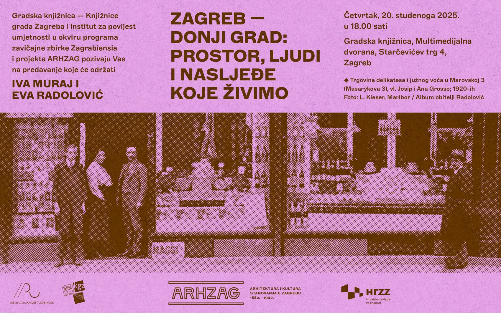 Javno predavanje u okviru programa zavičajne zbirke Zagrabiensia i projekta ARHZAG održat će se u 20. studenoga 2025. u 18:00 sati u Multimedijalnoj dvorani Gradske knjižnice (Starčevićev trg 4, Zagreb).