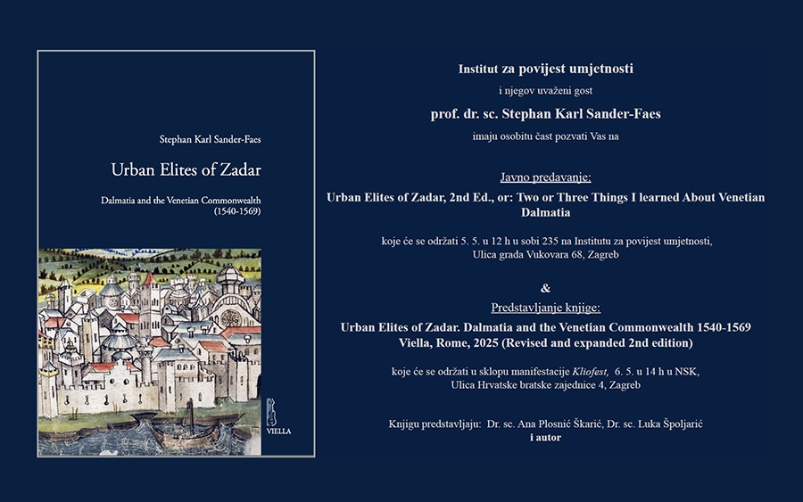 Na Institutu za povijest umjetnosti gostuje prof. dr. sc. Stephan Karl Sander Faes, koji će u utorak 5. svibnja 2026. s početkom u 12:00 održati javno predavanje.