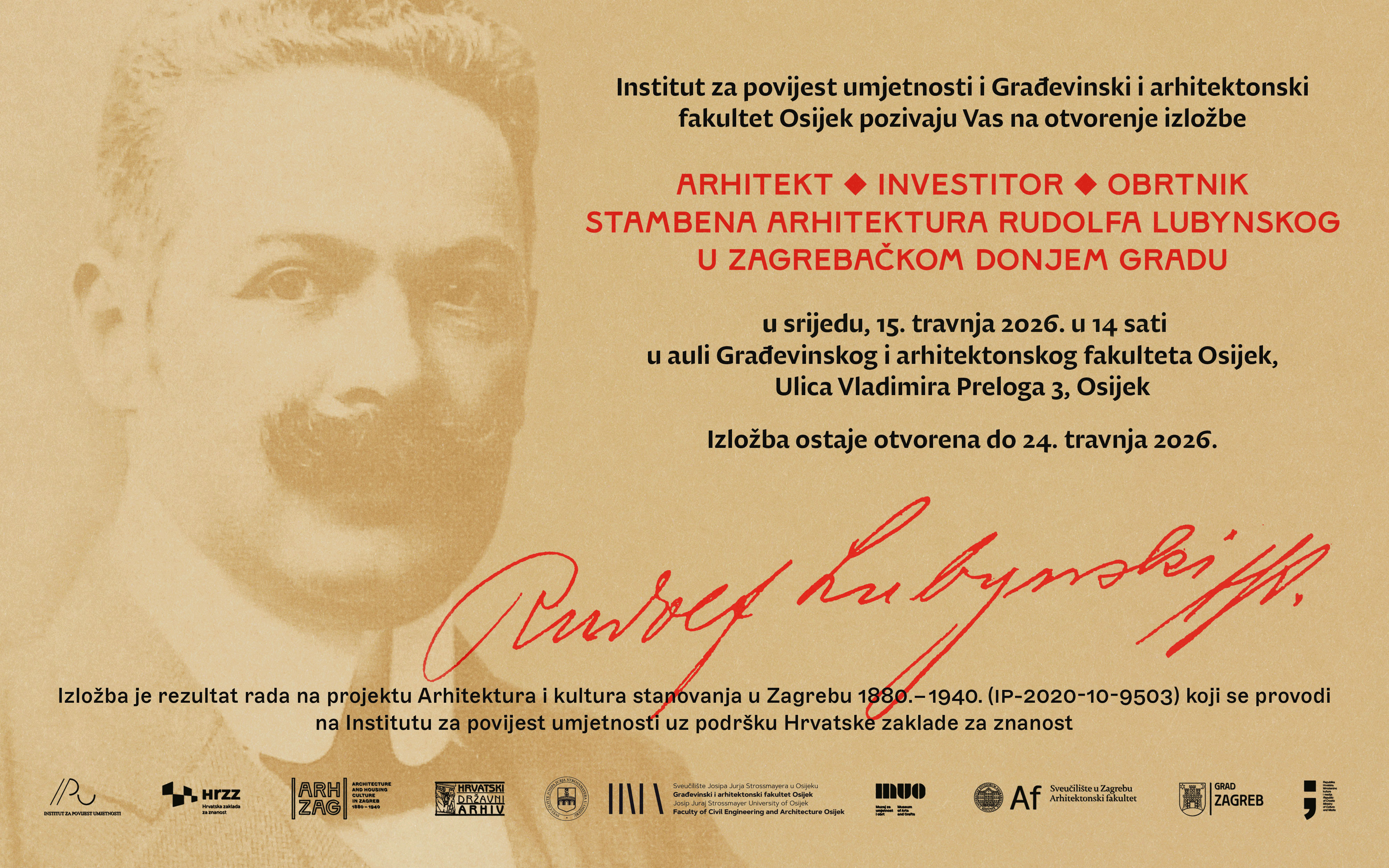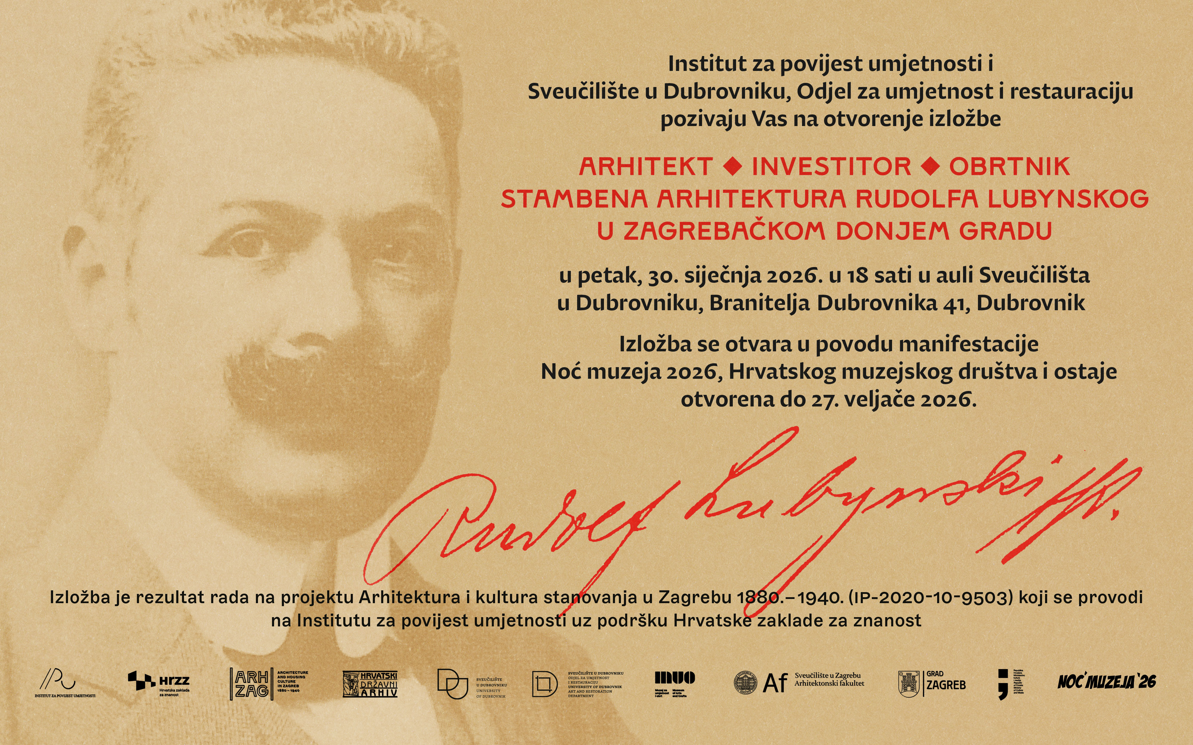 Izložba posvećena stambenoj arhitekturi Rudolfa Lubynskog u zagrebačkom Donjem gradu otvara se 30. siječnja 2026. u 18:00 sati u auli Sveučilišta u Dubrovniku.